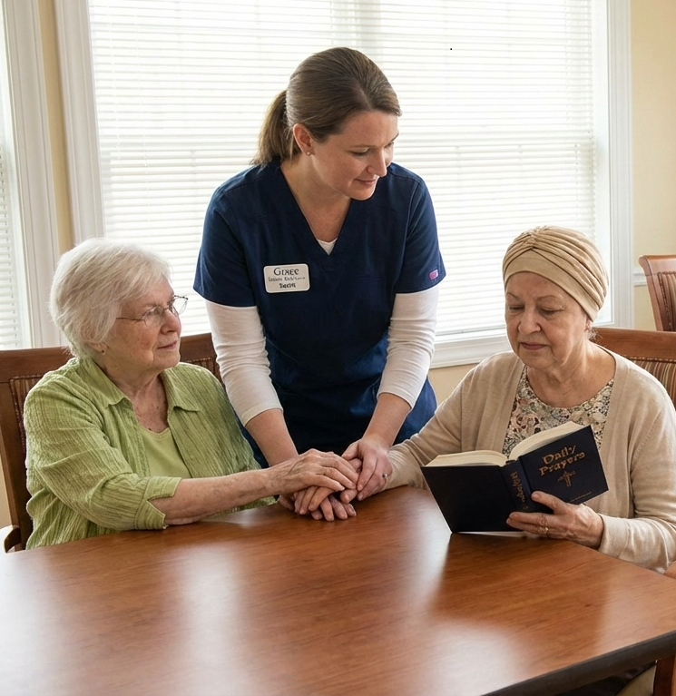 Spiritual Care PolicyGrace Home Care integrates faith practices respectfully, honoring each resident’s beliefs. Staff facilitate voluntary devotions (e.g., prayer, scripture), coordinate clergy visits weekly, and document spiritual preferences in care plans. No proselytizing; focus on comfort and purpose.